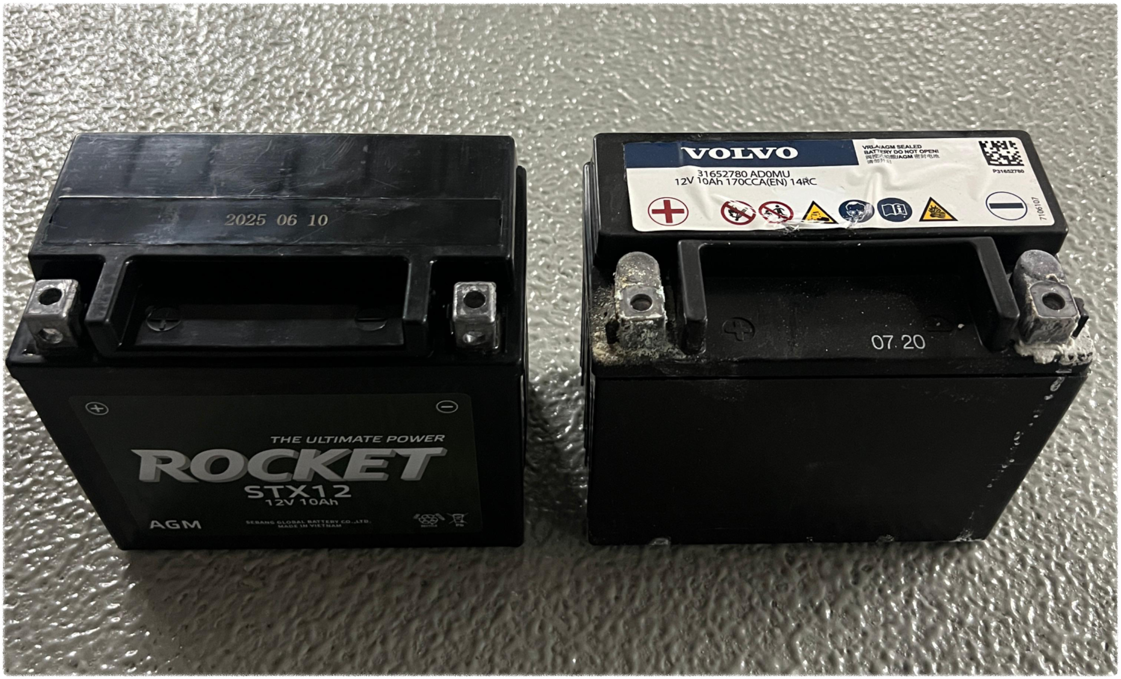 | AGM 12V 10A 배터리 (STX12 규격) | 볼보 매뉴얼 기준 규격 / 동일 크기 확인 필수 |